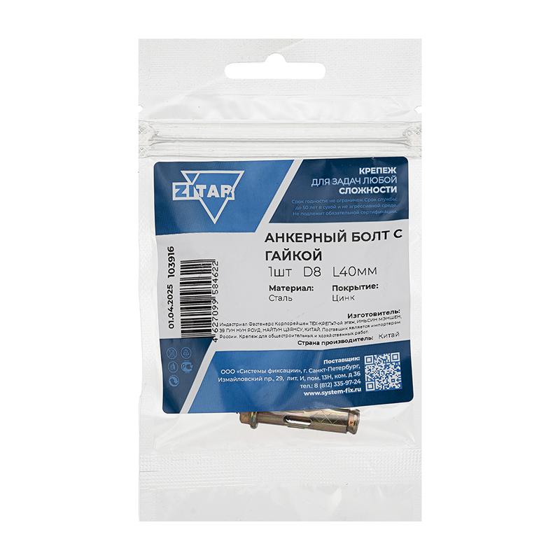 Болт анкерный с гайкой 8х40 Tech-Krep/Zitar 103916 Доставка по России : цена — купить в интернет-магазине | Характеристики, фото