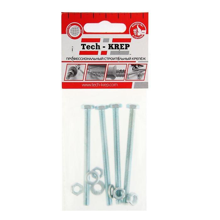 Болт с шестигранной головкой М6х80 DIN 933 + гайка + шайба оцинк. (уп.4шт) Tech-Krep/Zitar 112721
