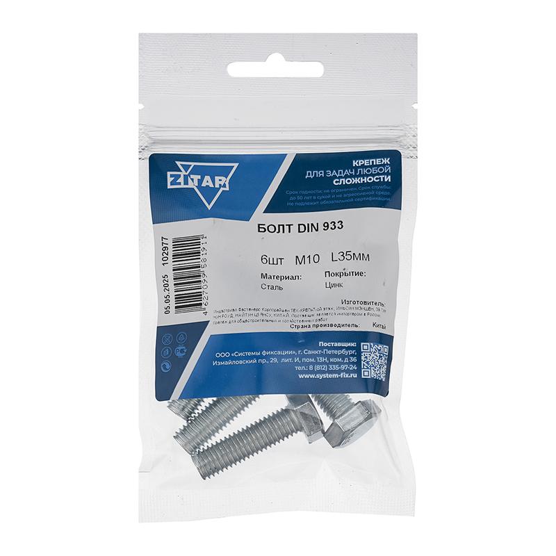 Болт с шестигранной головкой М10х35 DIN 933 оцинк. (уп.6шт) Tech-Krep/Zitar 102977 Доставка по России : цена — купить в интернет-магазине | Характеристики, фото