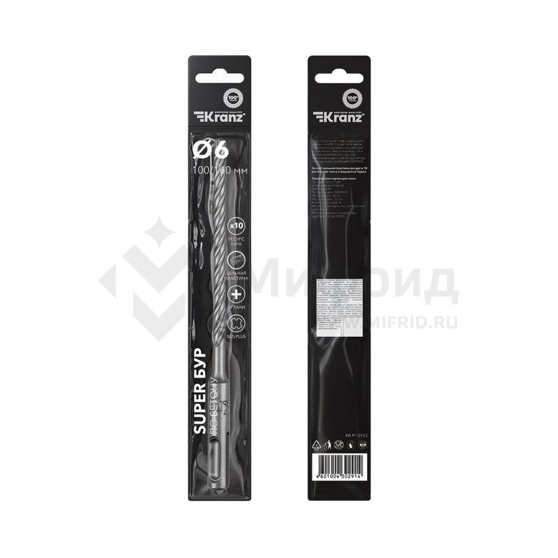 Рабочая часть бура выполнена из цельной твердосплавной пластины, что делает его устойчивым к сильным ударам и высоким температурам.