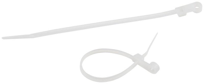 - Наличие монтажного отверстия на конце стяжки позволяет произвести быстрый монтаж хомута к рабочей поверхности с помощью саморезов или гвоздей.