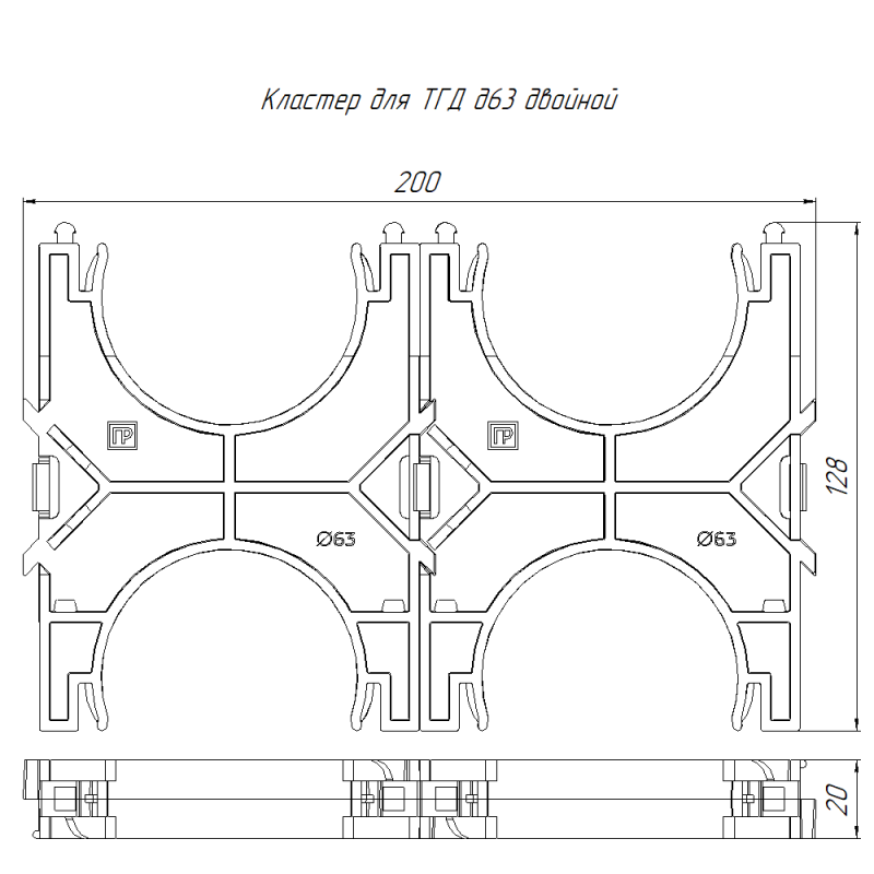 Кластер двойной двухсторонний для двустен. труб d63мм Промрукав PR13.02568