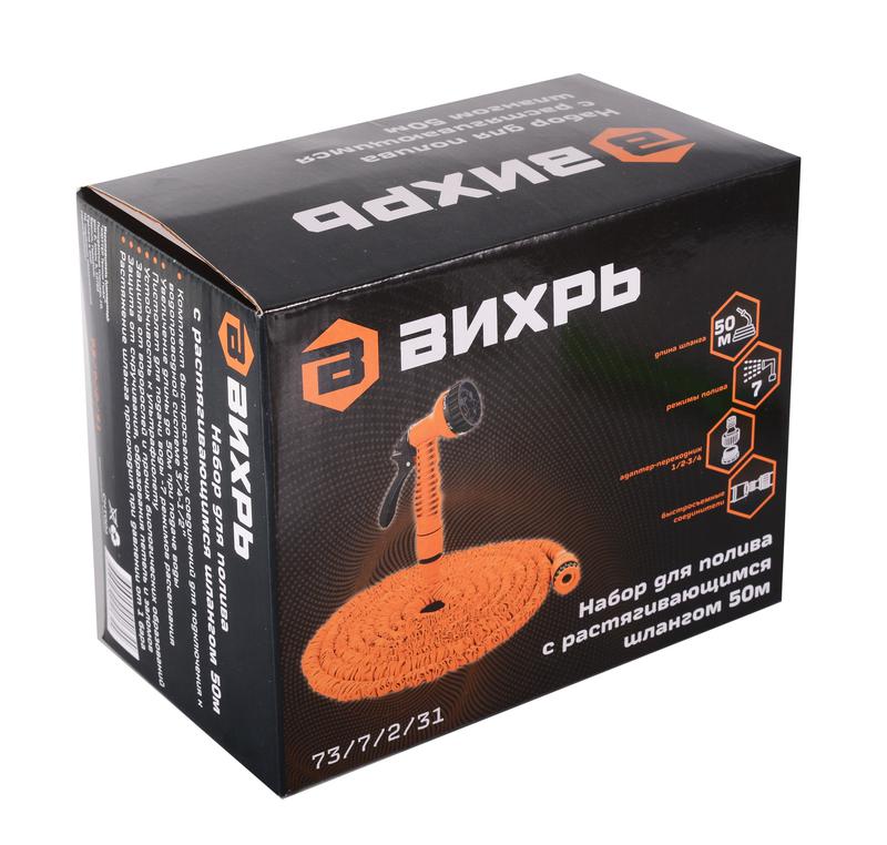 Набор для полива с растягивающимся шлангом 50м Вихрь 73/7/2/31 Доставка по России : цена — купить в интернет-магазине | Характеристики, фото