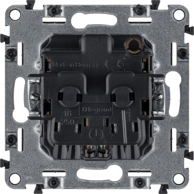 Представляет собой розетку из пластика, с лицевой панелью белого цвета, скрытой установки, монтируемый под штукатурку, на глубине не менее 40 мм. Предусмотрены защитные шторки, автоматически закрывающие гнезда розетки при вынутой вилке.
