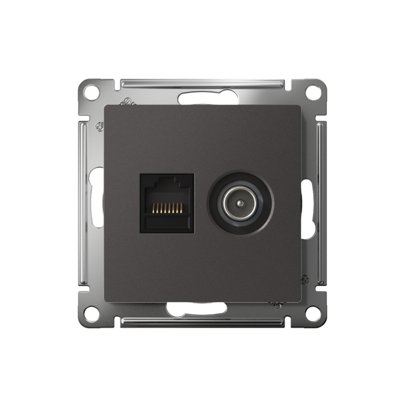 —Розетка компьютерная + телевизионная 2-м СП AtlasDesign RJ45 кат.5E + TV механизм базальт SE ATN001489