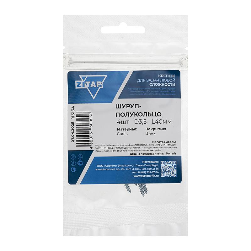 Шуруп-полукольцо 3.5х40 (уп.4шт) Tech-Krep/Zitar 113134 Доставка по России : цена — купить в интернет-магазине | Характеристики, фото