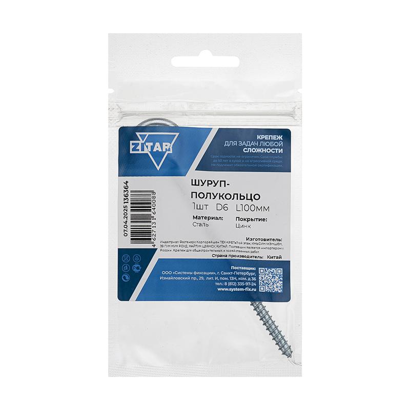 Шуруп-полукольцо 6.0х100 Tech-Krep/Zitar 136364 Доставка по России : цена — купить в интернет-магазине | Характеристики, фото