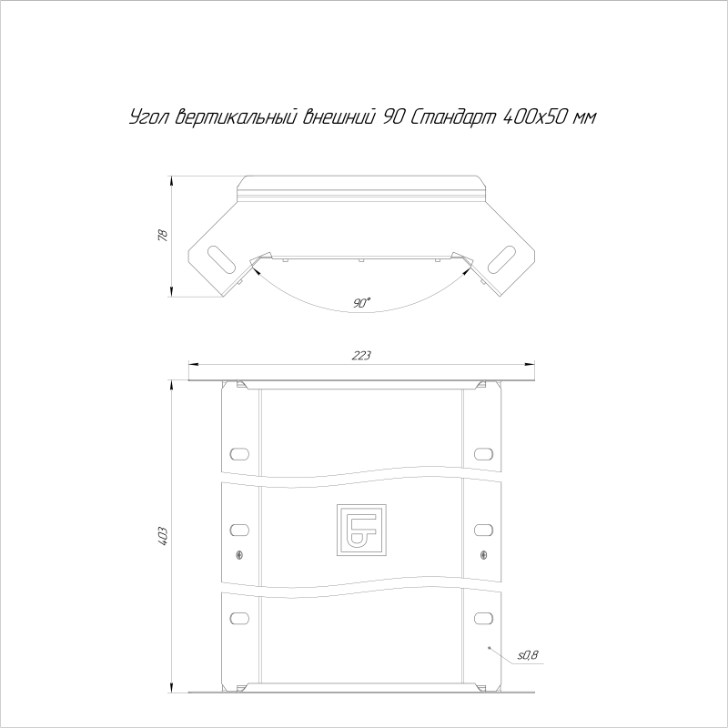 Угол вертикальный внешний 90 градусов предназначен для спуска кабельных трасс на 90 градусов, для перфорированных и глухих лотков. В комплект не входит крышка.