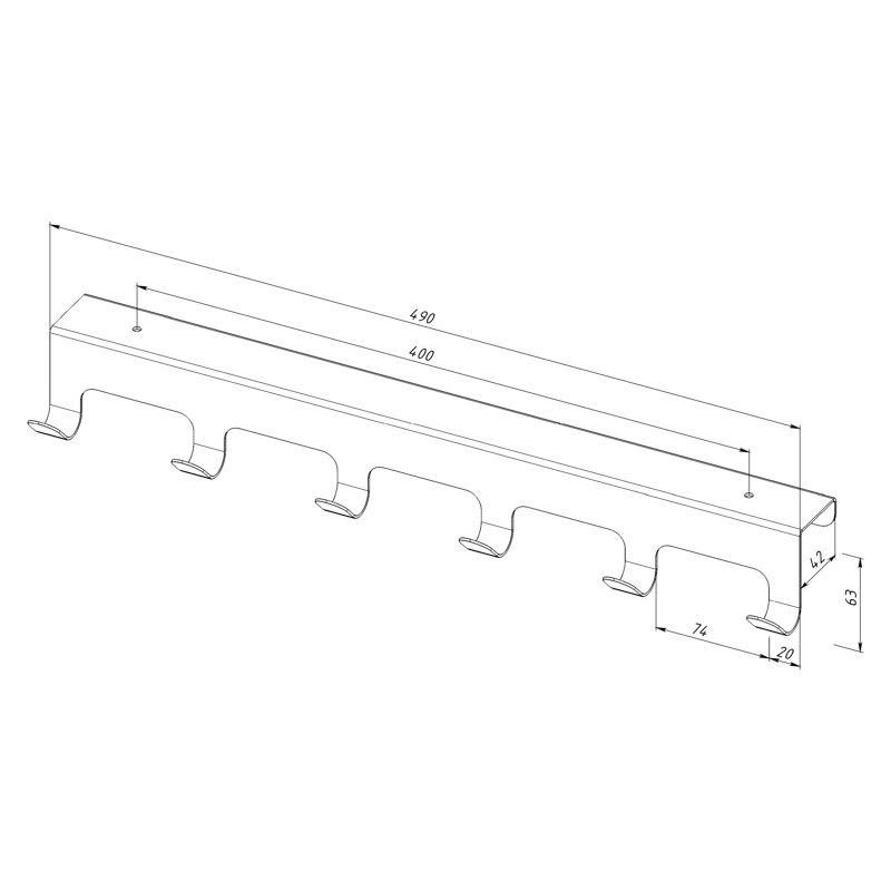 Вешалка оснащена шестью крючками. Рекомендованная нагрузка на один крючок не должна превышать 2,5 кг.