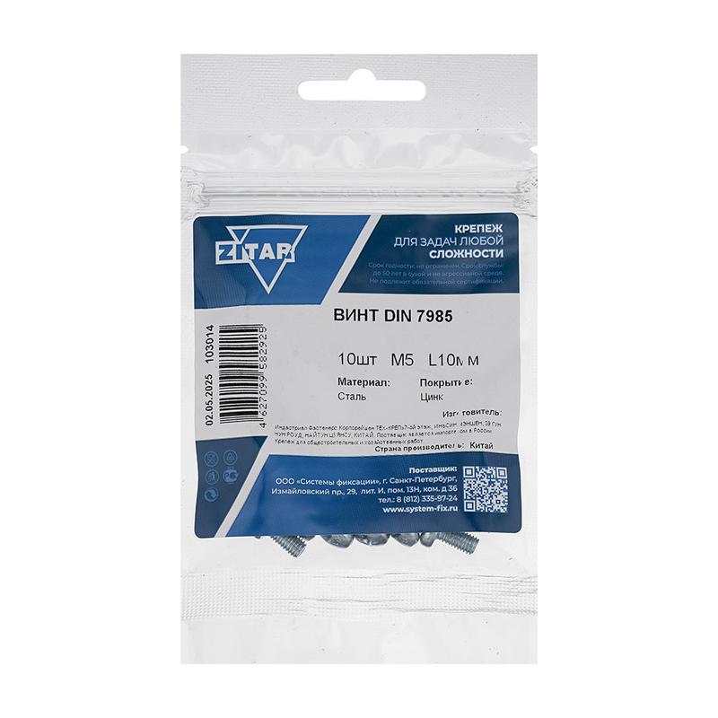 Винт с полукруглой головкой М5х10 DIN 7985 оцинк. (уп.10шт) Tech-Krep/Zitar 103014 Доставка по России : цена — купить в интернет-магазине | Характеристики, фото