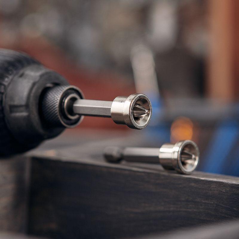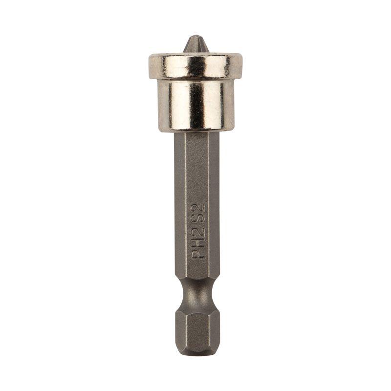 Изготовлена из легированной высокопрочной стали S2, что дает повышенную устойчивость к изломам и деформации в наиболее нагружаемых точках касания. Размер наконечника PH2 подходит для работы со шлицами с резьбовым диаметром 3,1 – 5 мм. Ограничитель не позволяет слишком глубоко закрутить крепеж, тем самым предотвращает повреждение гипсокартонного листа. Намагниченный наконечник облегчает крепление и фиксацию крепежа на бите. Шестигранный хвостовик надежно фиксирует биту в патроне инструмента и не дает ей проворачиваться.