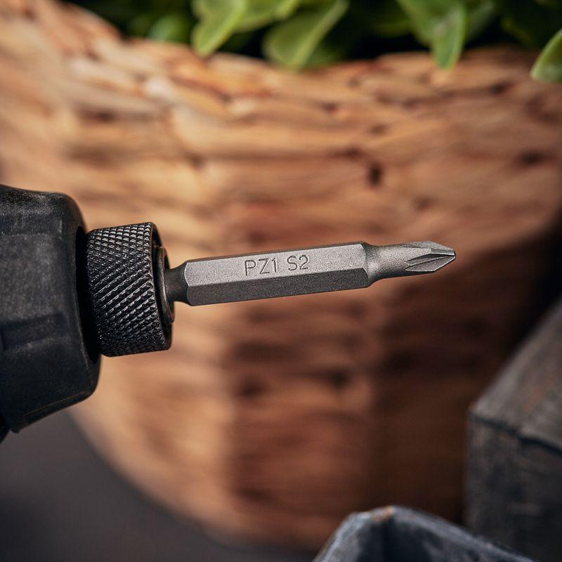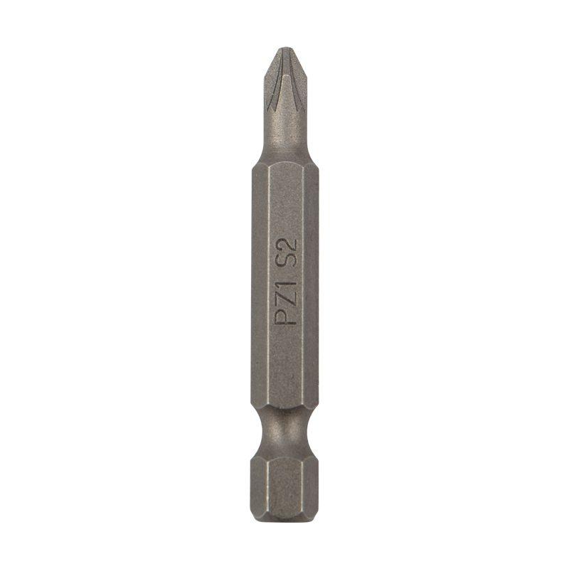 Изготовлена из легированной высокопрочной стали S2, что дает повышенную устойчивость к изломам и деформации в наиболее нагружаемых точках касания. Размер наконечника PZ1 подходит для работы со шлицами с резьбовым диаметром 2,1-3 мм. Намагниченный наконечник облегчает крепление и фиксацию крепежа на бите. Шестигранный хвостовик надежно фиксирует биту в патроне инструмента и не дает ей проворачиваться.