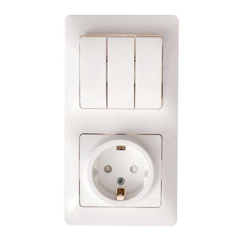 - Трёхклавишный выключатель позволяет управлять тремя источниками света из одной точки.