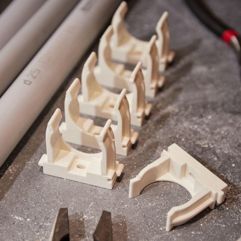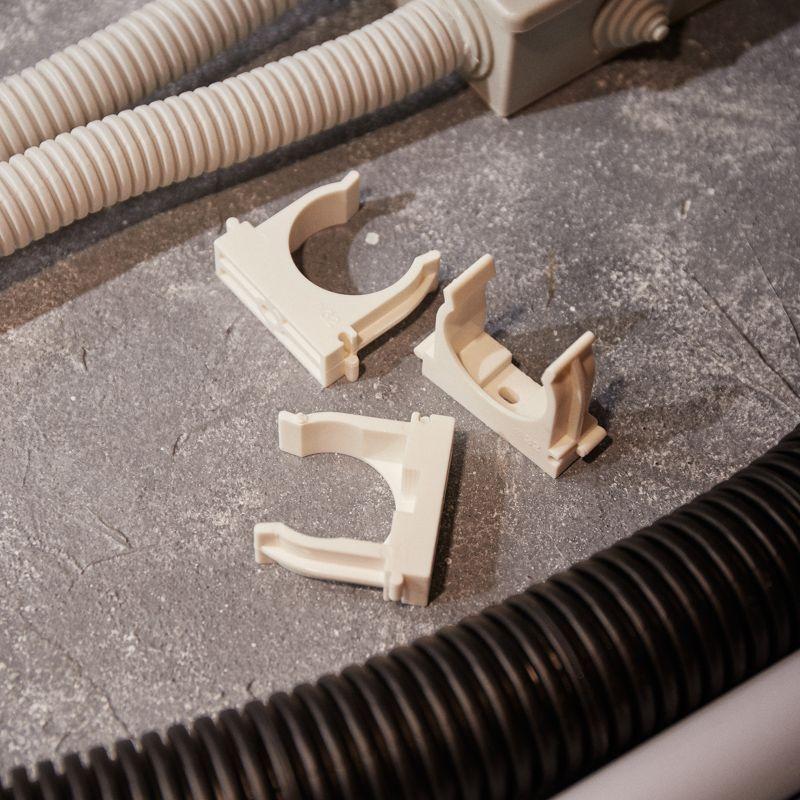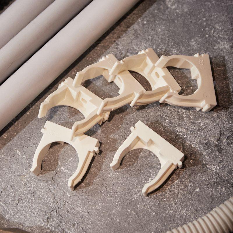 Изделие оснащено фиксаторами типа "шип-паз": при установке возможно соединять крепежи-клипсы различных диаметров.