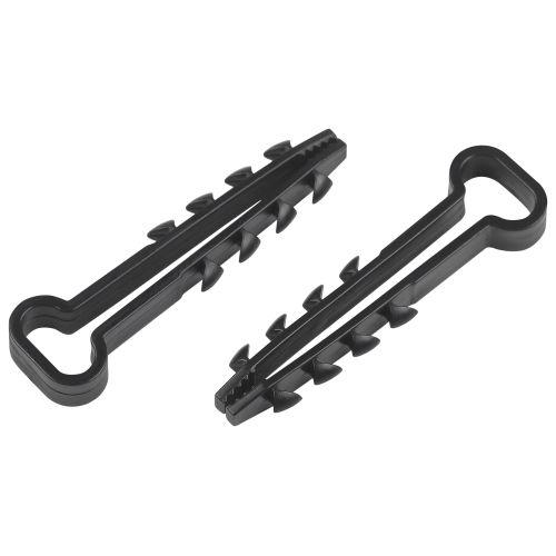 Установка дюбель-хомута довольно проста. Достаточно лишь просверлить отверстие, соответствующее диаметру дюбеля, затем надеть дюбель на провод и вставить в отверстие, приложив небольшое усилие. Зубчики, находящиеся на дюбеле, упираются в стенки отверстия и обеспечивают надежную фиксацию, не позволяя крепежу выскользнуть из него даже при значительных усилиях.