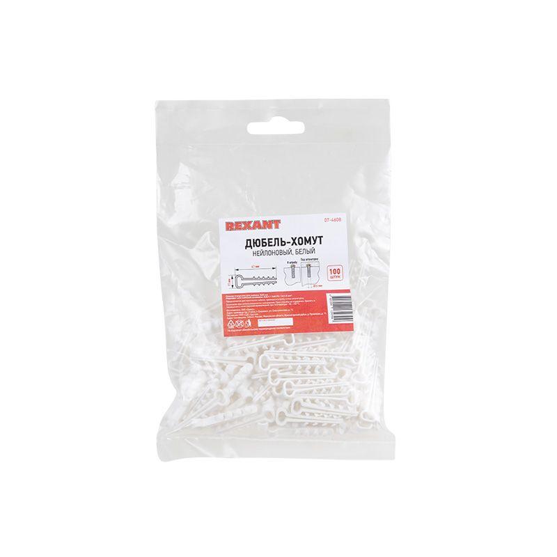В упаковке 100 дюбель-хомутов белого цвета.