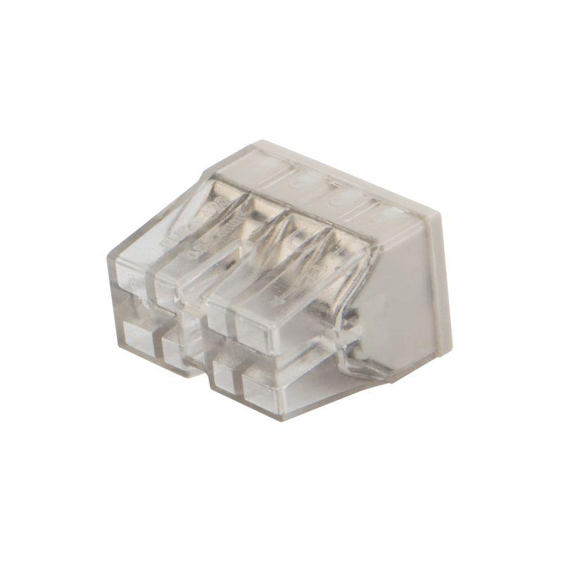 Компактный прозрачный корпус удобен для контроля соединения, а яркая цветовая разметка способствует визуальному различию клемм по количеству проводников.