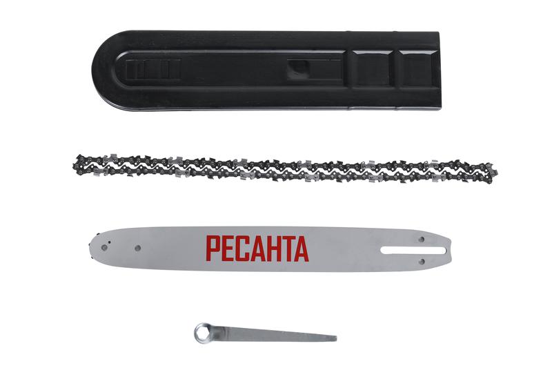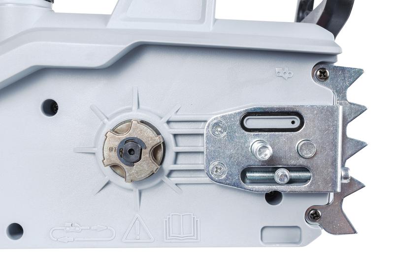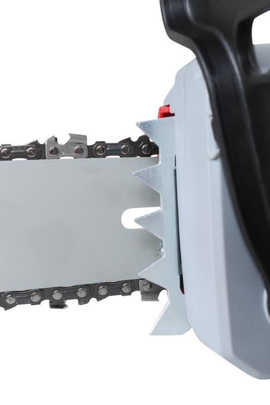В комплект поставки входит защитный кожух шины. Аксессуар позволяет хранить инструмент нужном месте, без риска случайных травм или повреждений покрытия пола и стен. Зубчатый упор обеспечивает проведение ровного распила."