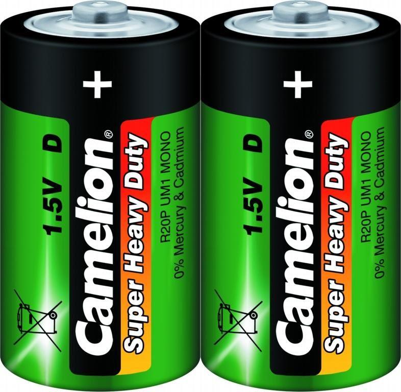 Батарейка Camelion R20P-SP2G, напряжение 1,5В, емкость 5600 мА*ч, кол-во в упаковке 2 шт., размер упаковки 65x65x33 мм, использовать при температуре от -18 до + 55 °C, хранить в сухом помещении при температуре от +15 до +25°C. Срок хранения 3 года.
