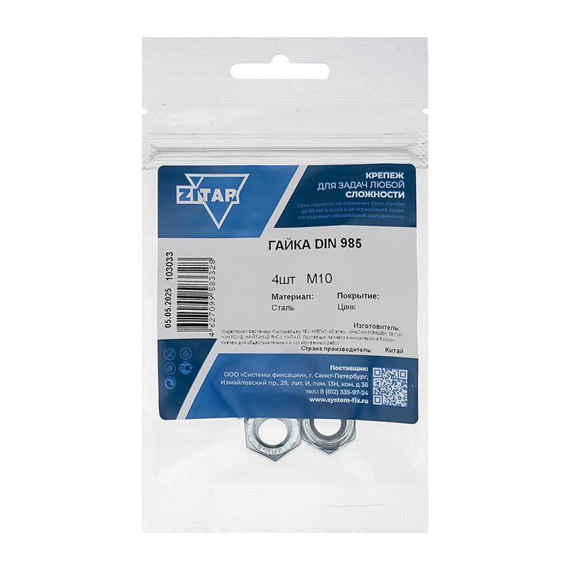 Гайка самоконтрящаяся М10 DIN 985 оцинк. (уп.4шт) Tech-Krep/Zitar 103033 Доставка по России : цена — купить в интернет-магазине | Характеристики, фото