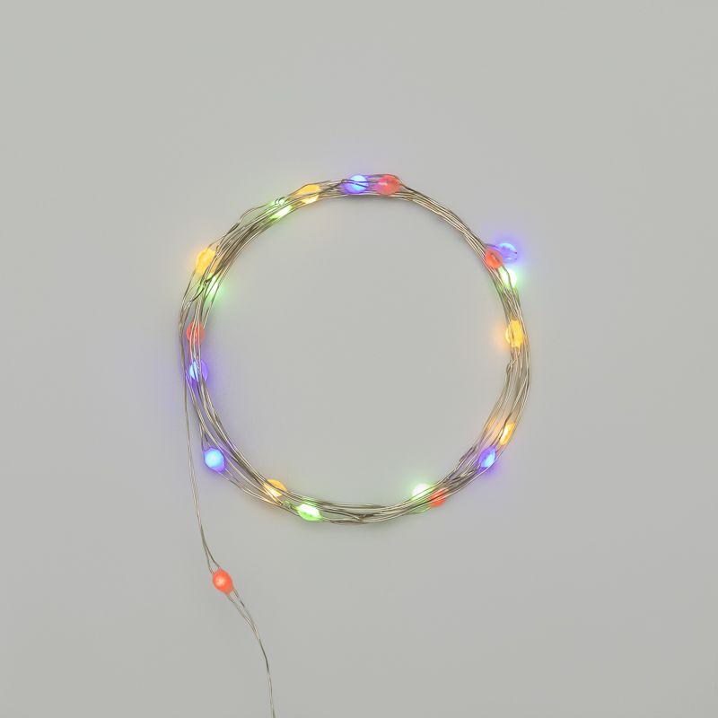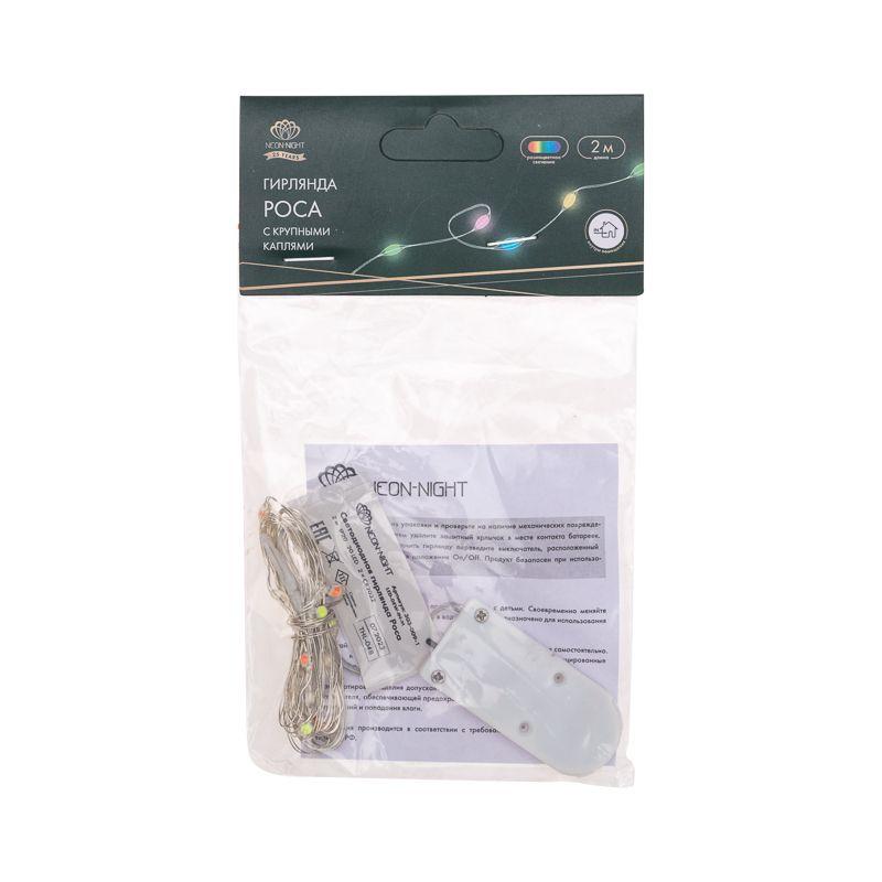 Гирлянда состоит из тонкого провода длиной 2 метра, с расположенными на нем 20 разноцветными долговечными светодиодами.