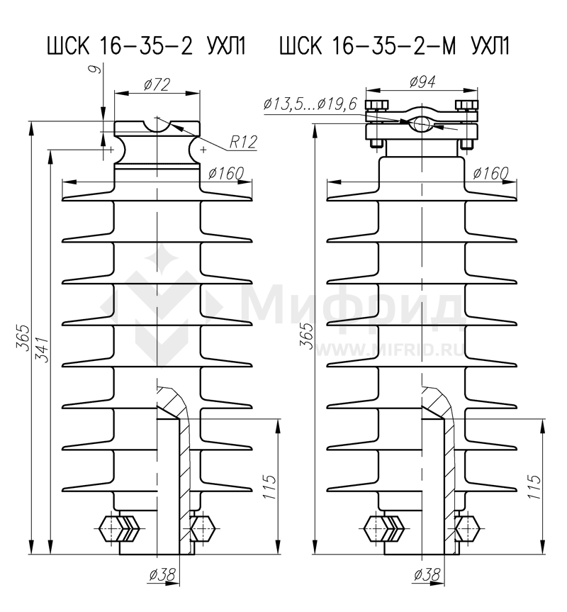Штыревые полимерные изоляторы на напряжение 35 кВ типа ШСК 16-35-2 УХЛ1 и ШСК 16-35-2-М УХЛ1