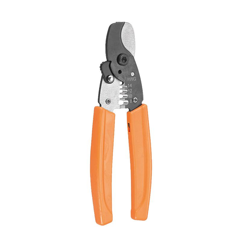Корпус кабелереза изготовлен из высокопрочной стали. Лезвие для обрезки кабеля гарантирует чистый и аккуратный рез, а лезвие зачистки имеет удобную маркировку типоразмеров в рабочей зоне. Конструкция инструмента имеет фиксатор сомкнутого состояния для удобного и безопасного хранения и транспортировки, оснащен пружиной обратного хода рукояток и лезвия для быстрой и легкой работы. Двухкомпонентные защитные рукоятки с резиновыми вставками не дают инструменту выскальзывать из руки при работе.