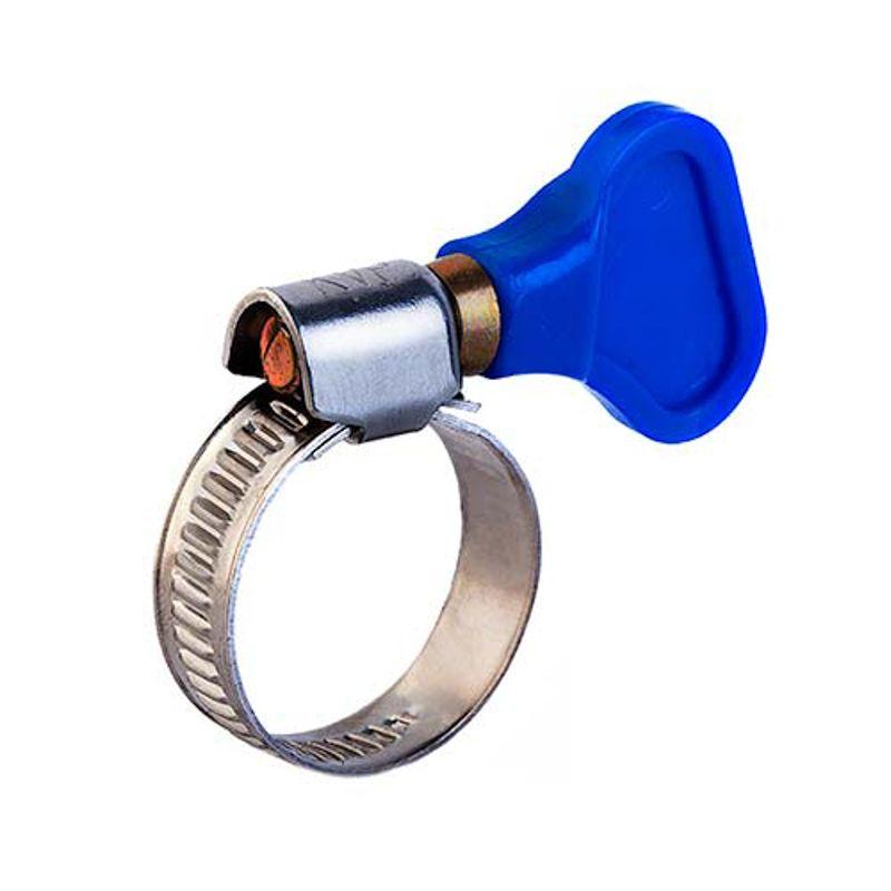 Ключ на данном хомуте позволяет обойтись без вспомогательного инструмента. Такой хомут несложно затянуть или раскрутить вручную, поэтому в быту этот крепеж находит применение там, где его требуется часто снимать и ставить вновь.