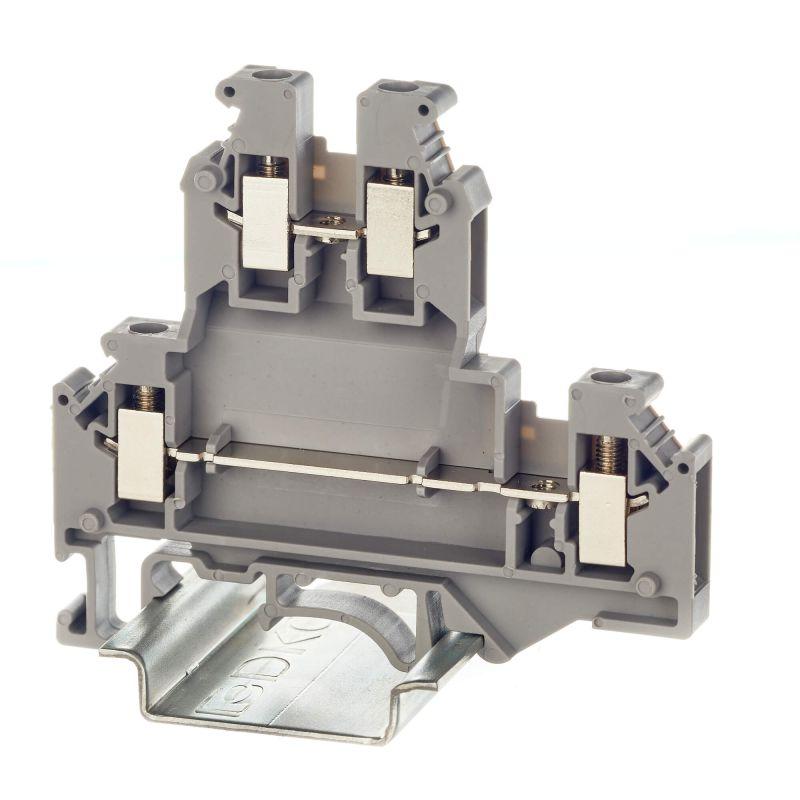 Серый цвет, 4 точки подключения, 4 мм2. 1 канал винтовых перемычек на каждом уровне. Габариты (В?Ш?Г) 62?56?6,2 мм.
