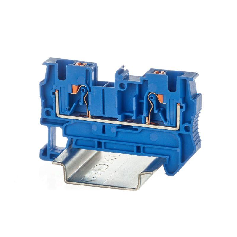 Синий цвет, 2 точки подключения, 4 мм2. 2 канала для вставных перемычек. Габариты (В?Ш?Г) 36,8?55,9?6,2 мм.
