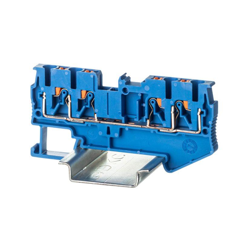 Синий цвет, 4 точки подключения, 2.5 мм2. 2 канала для вставных перемычек. Габариты (В?Ш?Г) 37,2?73?5,2 мм.