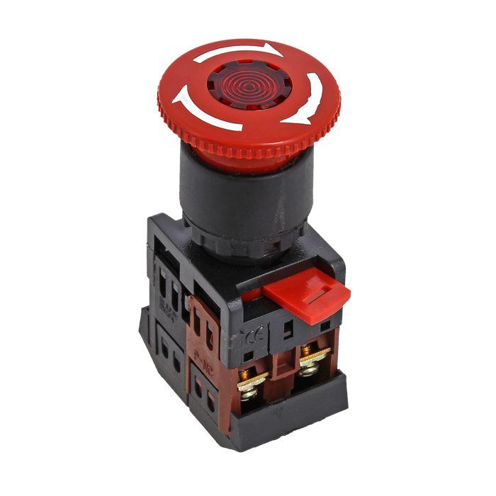 Представляет собой кнопку управления диаметром отверстия 22 мм, высотой 34 мм, без подсветки, красного цвета. Состоит из головки (собственно кнопки) и контактного модуля.