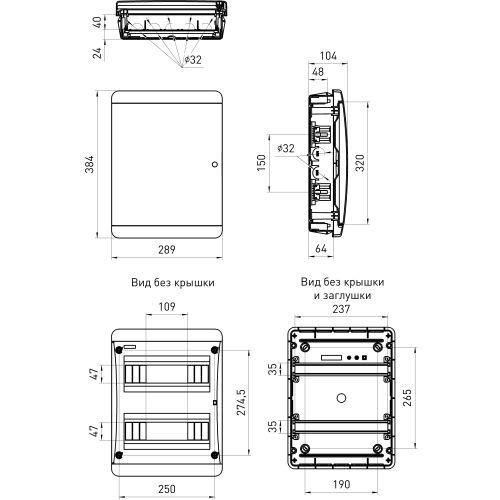 • Простое введение кабелей через выламываемые отверстия по контуру щитка