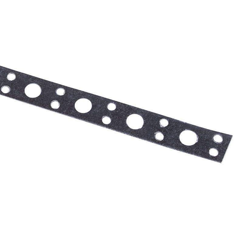 Представляет собой прямую стальную ленту с перфорацией. Отличается высокой прочностью на излом и гибкостью, поэтому может принимать нестандартную форму. Цинковое покрытие защищает ленту от коррозии и продлевает срок ее службы. Монтируется при помощи стандартных гвоздей и шурупов. Ножницами по металлу можно отрезать фрагмент ленты любой длины.
