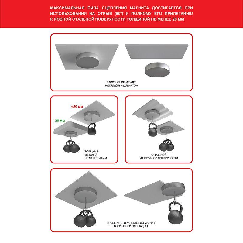 Магнит изготовлен из сплава N42, который хорошо подходит для применения в быту и промышленности. Практически не подвержен размагничиванию.