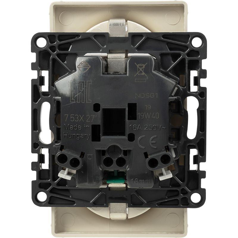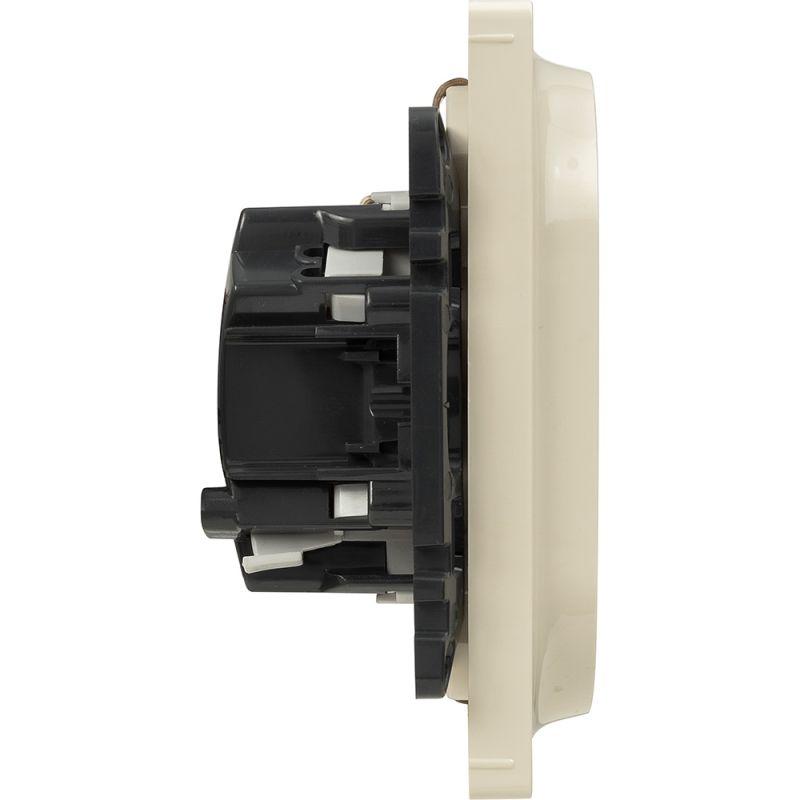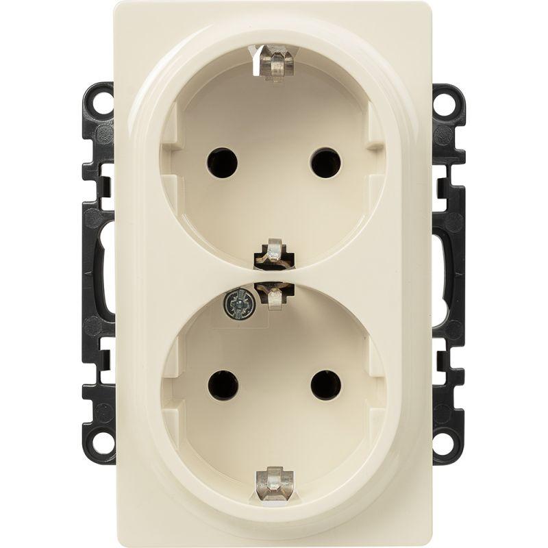 Представляет собой двухместный модуль розетки, 146 х 71 мм, с защитным контактом стандарта SCHUKO. Изготовлен из пластика, с необработанной поверхностью, цвета слоновой кости. Монтируется под штукатурку.