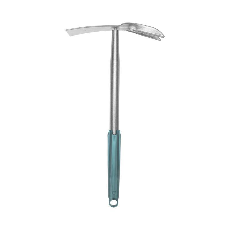 Также в рукоятке предусмотрено отверстие, позволяющее размещать мотыжку на вертикальных поверхностях, что обеспечивает удобство хранения и позволяет экономить место на рабочем пространстве.