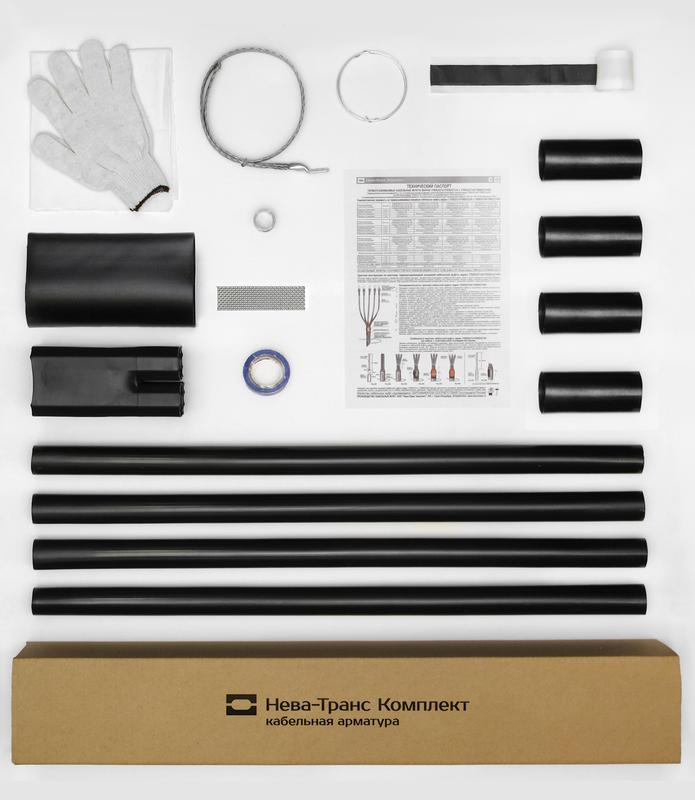 Монтируется на разделке кабеля путем термоусаживания деталей из модифицированного полимера с помощью газовой горелки или высокотемпературного фена.