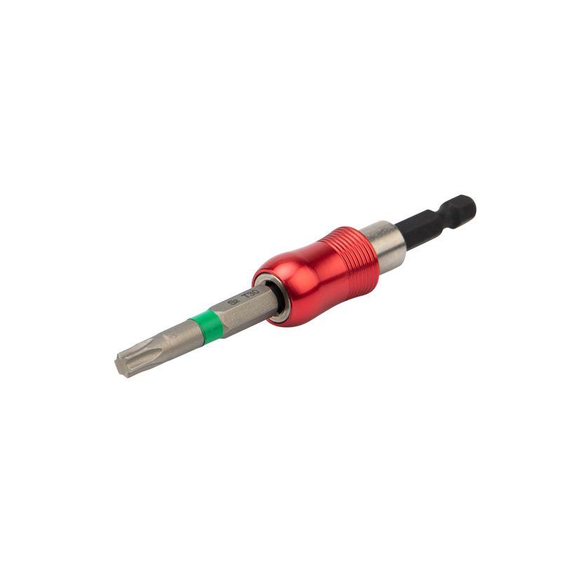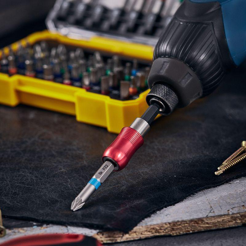 Биты изготовлены из легированной высокопрочной стали S2, что дает повышенную устойчивость к изломам и деформации в наиболее нагружаемых точках касания. Подходят для работы со шлицами типа PH, PZ, Torx, SL, HEX популярных диаметров. Намагниченные наконечники облегчают крепление и фиксацию крепежа на бите. В набор также входит магнитный держатель для бит, который позволяет легко менять биты и крепко удерживает их в посадочном отверстии. Шестигранный хвостовик подходит для установки на все виды шуруповертов и отверток-адаптеров и не дает проворачиваться бите в патроне инструмента.