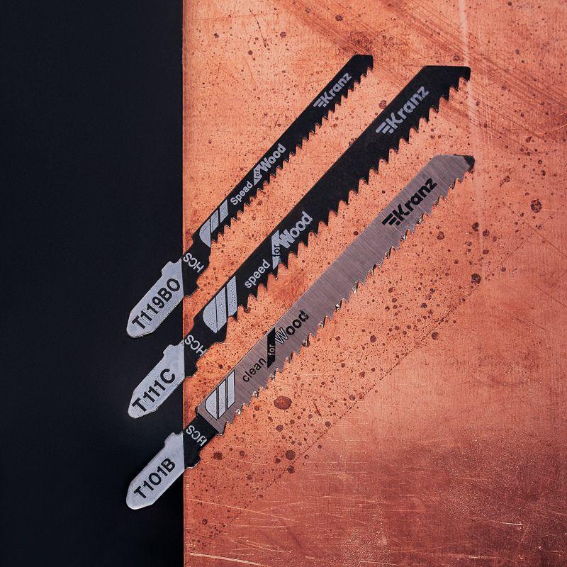 Пилки выполнены из высокоуглеродистой стали, поэтому сочетают в себе такие свойства, как прочность, износостойкость и пластичность. Подходят для быстрого, чистого, а также фигурного реза. Улучшенная закалка токами высокой частоты увеличивает твердость зубьев полотен и обеспечивает высокий ресурс. Универсальный Т-образный хвостовик подходит для установки на большинство моделей электролобзиков.