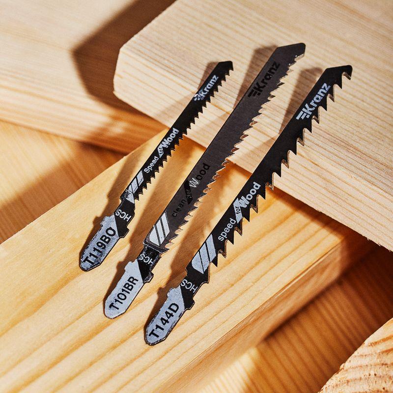 Пилки выполнены из высокоуглеродистой стали, поэтому сочетают в себе такие свойства, как прочность, износостойкость и пластичность. Подходят для быстрого, чистого, а также фигурного реза. Улучшенная закалка токами высокой частоты увеличивает твердость зубьев полотен и обеспечивает высокий ресурс. Универсальный Т-образный хвостовик подходит для установки на большинство моделей электролобзиков.