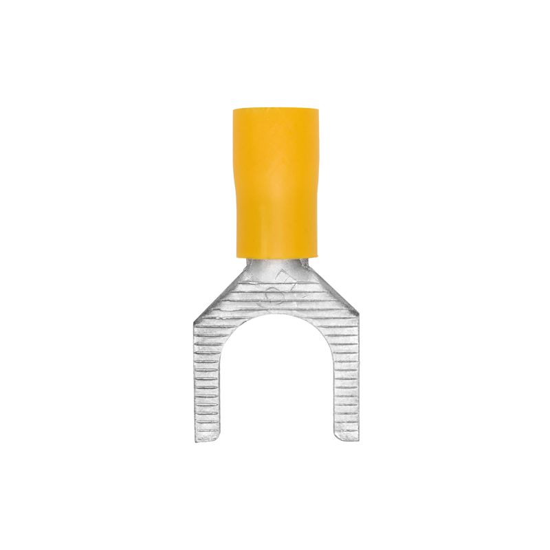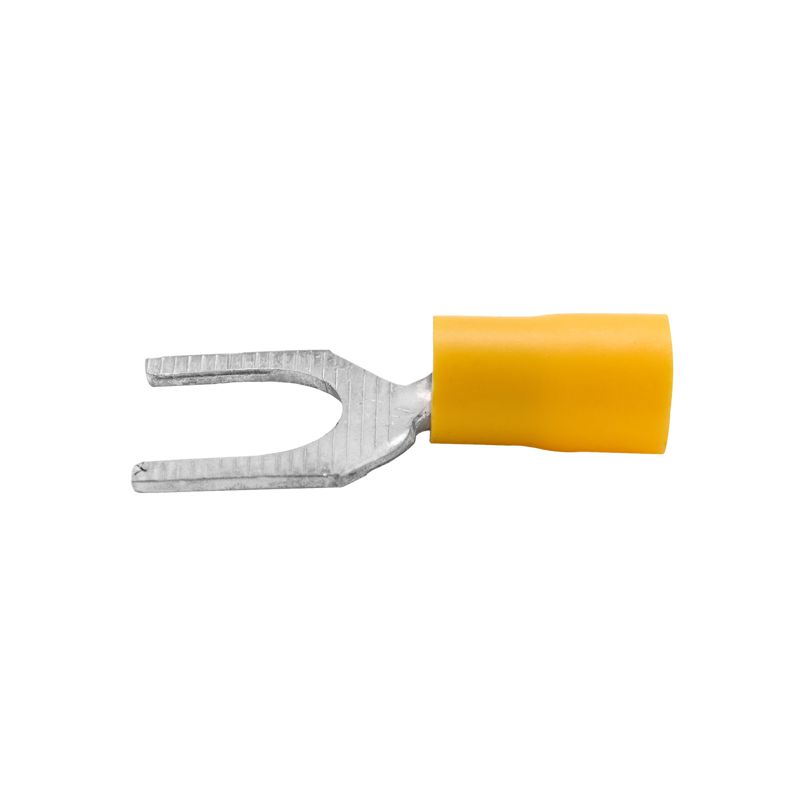Наконечники соединяются методом «вилка-розетка» («папа-мама»). Материал контактной части – медь. Наконечник имеет форму вилки. Луженое покрытие обеспечивает защиту от коррозии. Фланец изолирован. Цвет изоляции - желтый. Номинальное поперечное сечение - 2,5-6 мм2.