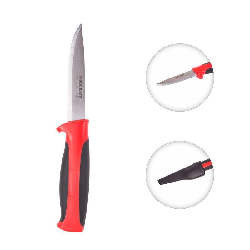 Нож изготовлен из прочных и надежных материалов, благодаря чему он обладает повышенным рабочим ресурсом. Лезвие сделано из нержавеющей стали. Незаменим при выполнении отделочных работ.