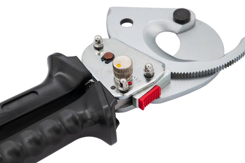 Храповой механизм позволяет производить обрезку пучка проводов