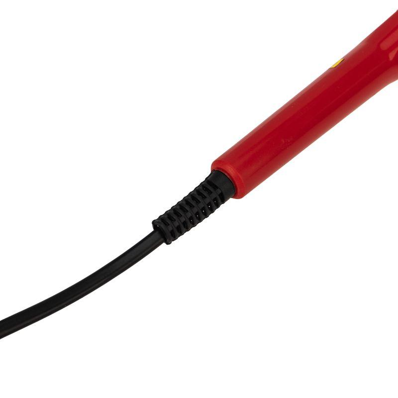 Паяльник выполнен с керамическим нагревательным элементом, поэтому нагревается быстрее. чем нихромовый и при бережном отношении прослужит много долгих лет. Долговечное жало паяльника состоит из медного сердечника, покрытого слоем электролитически осажденного железа. Рабочая часть жала электрохимически покрыта слоем олова (что обеспечивает облуживаемость), а остальная поверхность — хромирована.