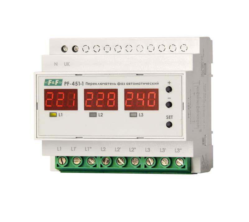 Переключатель фаз питается от 3-х фазной сети, и на выходе устройства будет присутствовать одна из фаз, параметры которой удовлетворяют требованиям, как только напряжение на ней выйдет за допустимые пределы - к выходу устройства будет подключена, иная исправная фаза (если таковая имеется).
