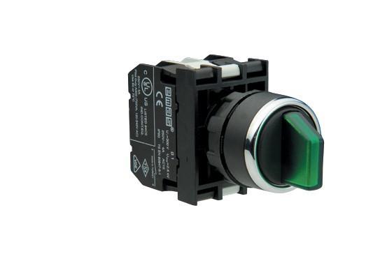 Переключатель c подсветкой НЕОН (24/36/220В) 3 положения (2-0-1) с фиксацией зеленый (2НО) IP50 c  блок контактом B3. Механический ресурс 500 000 операций. Электрический ресурс 100 000 операций. Рабочие температуры мин./макс. -5/+40 °C. Класс защиты IP 50. Предельная повторяемость операций без нагрузки: 3000 операций в час полная нагрузка: 1200 операций в час. Номинальное напряжение 250 V AC. Номинальный ток 4 А. Коммутируемая мощность 1000 VА. Сопротивление изоляции 10 MОм (мин. 500 V DC). Сечение провода 1,5 - 2,5 мкв.м. Максимальная функциональность и легкий монтаж. Сборка осуществляется по принципу Lego. Возможность присоединения блок-контакта подсветки. Пластмассовые части изготовлены из поликарбоната. Удобное и безопасное подключение кабеля. Применение универсальных держателей и стандартных табличек с надписями. Возможно любое положение при установке