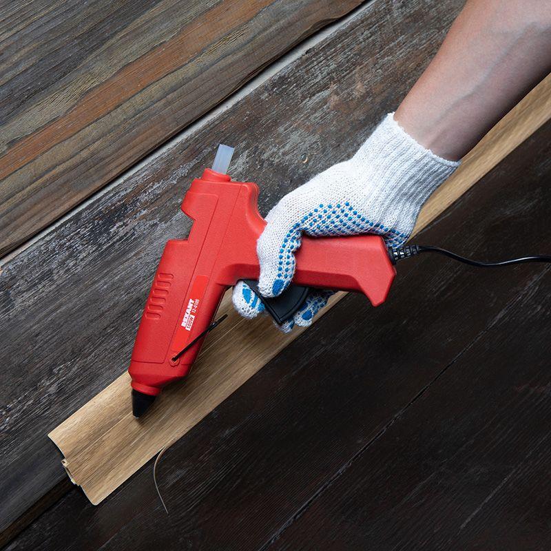 Принцип работы подразумевает расплавление клеевого стержня при включении прибора в сеть. Затем с помощью нажатия на курок клей выдавливается в количестве, зависящем от силы давления при нажатии.