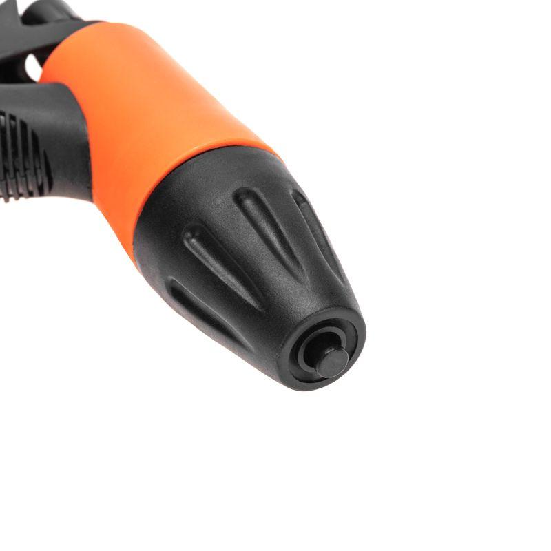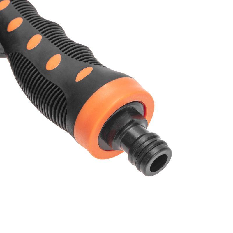 Изделие надежно и герметично крепится к шлангу при помощи универсального соединителя, расположенного на конце пистолета.