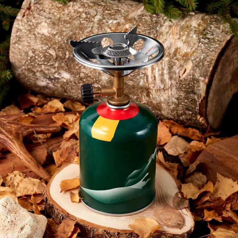 Изделие поставляется в чехле, удобном для хранения и транспортировки. Работает от газовых баллонов с резьбовым соединением, например, баллоны по 230 и 450 г.